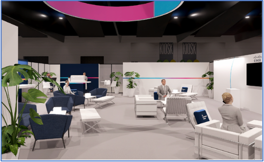 The CX Connections Lounge, within the World of Options, is a relaxed setting for scheduled buyer conferences.