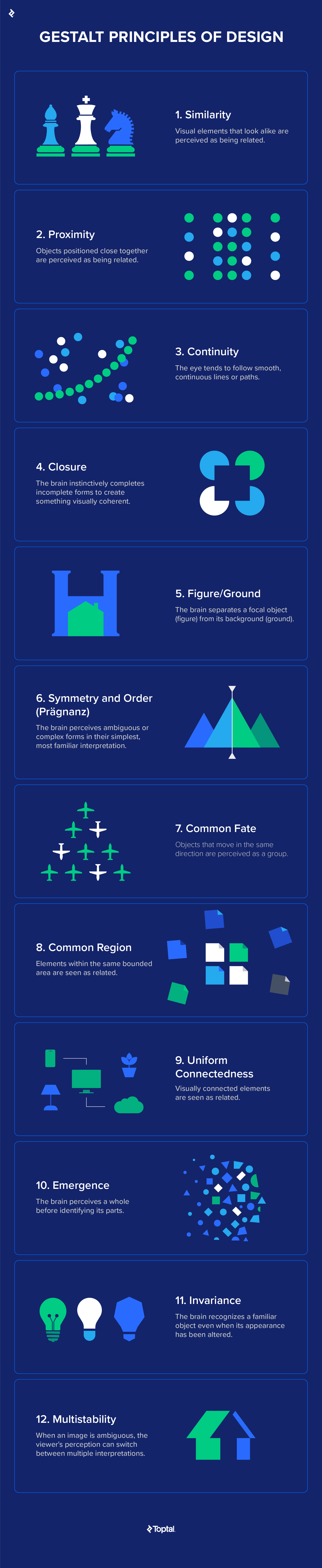 The desk under summarizes 12 core Gestalt ideas of design, every with a quick definition that captures its central concept.